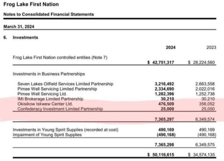 Frog Lake First Nation is a Cree community 207 km east of Edmonton. Total population is reported as 3,591 as of June 2023, with 2,123 members residing on reserve and 1,541 living off-reserve. Band member Hans McCarthy and the CTF took Frog Lake First Nation and the federal government to court over a lack of financial transparency. Between 2013 and 2024, the Frog Lake First Nation’s trust fund went from $102m to less than $9m. Virtually nothing from the oil-rich coffers have flowed to members. Band-owned ‘Frog Lake Energy Resources’ has been losing multi-millions since 2015.