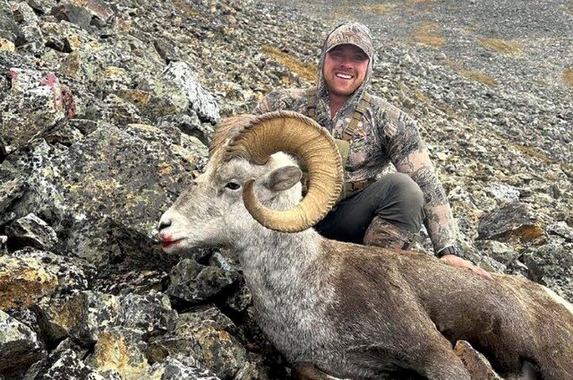 Daniel Gazzola posing with a Stone sheep ram he unlawfully killed on Aug. 31, 2023.