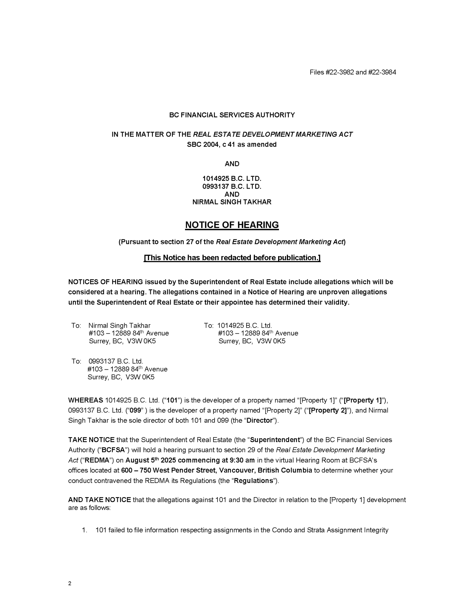 Nirmal Singh Takhar was nailed for violating REDMA (Real Estate Development Marketing Act) in 2025.