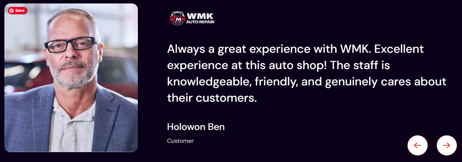 The fraud artists at WMK Auto Repair are ALSO using fake customer photos from the internet.![]() |