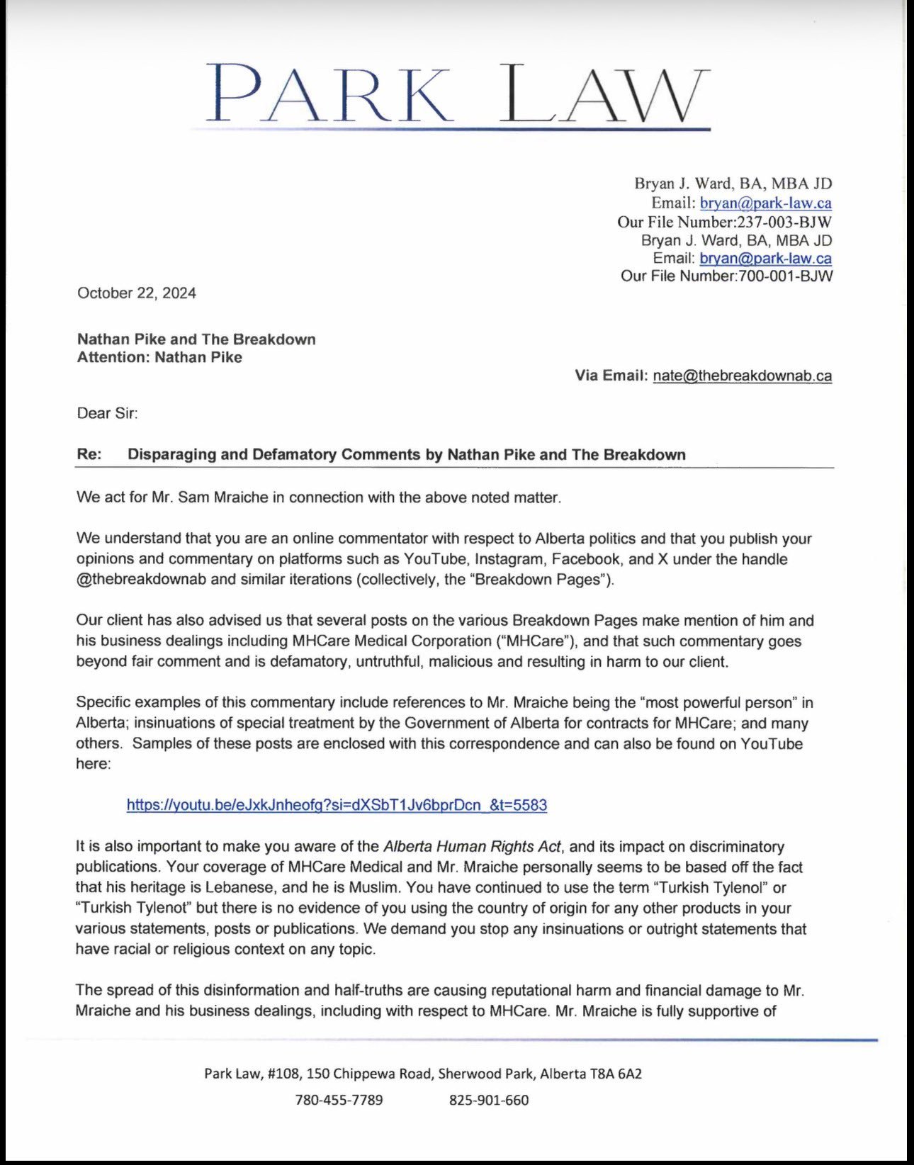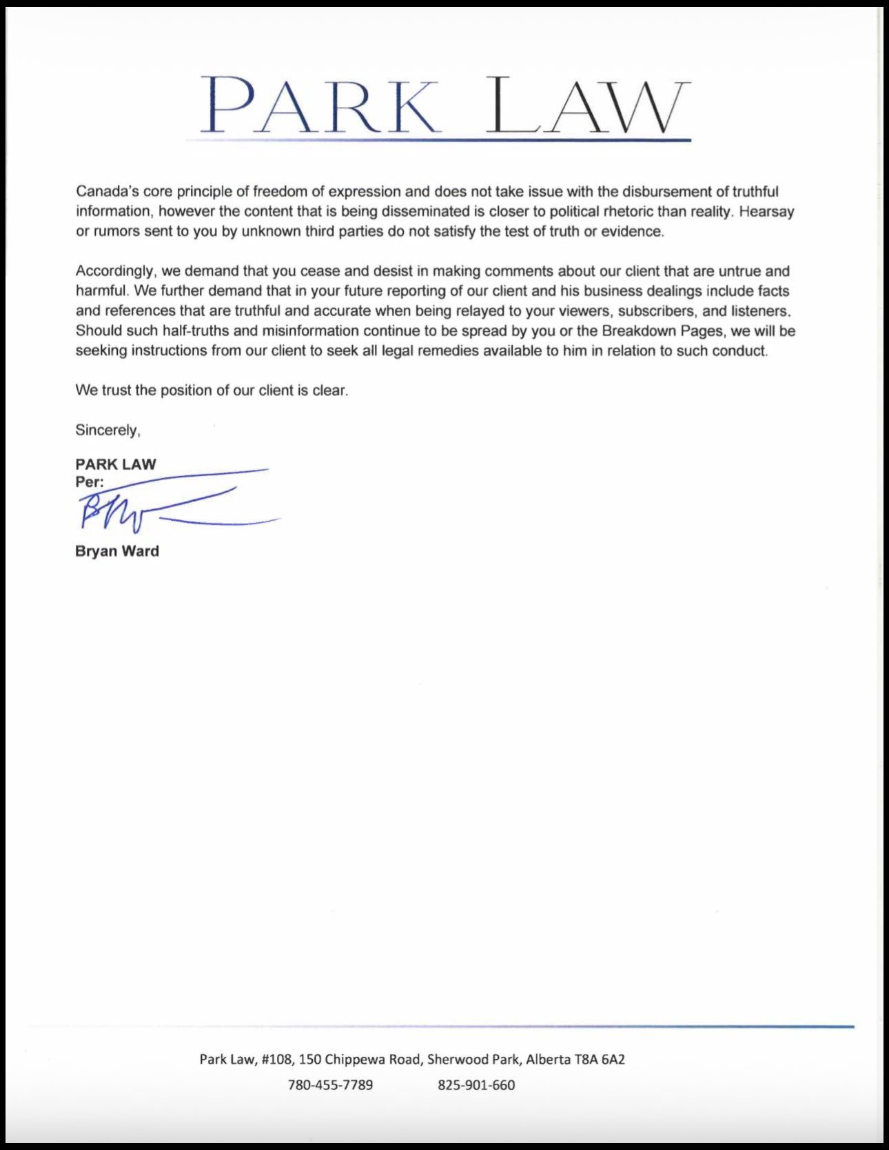 He has little qualification, only holding a JD. He touts himself … “The firm is led by senior legal counsel Bryan Ward, who is noted for his communication and interpersonal skills. Park Law’s office is situated at 150 Chippewa Rd #108, Sherwood Park, AB T8A 6A2. Clients can reach the firm by phone at +1 780-455-7789 or via email at info@park-law.ca.” He is a ‘go to’ Hassan Khalil Sam Mraiche functionary and was the paymaster for Mraiche’s podcasters. Its said the two started their relationship as drinking buddies.