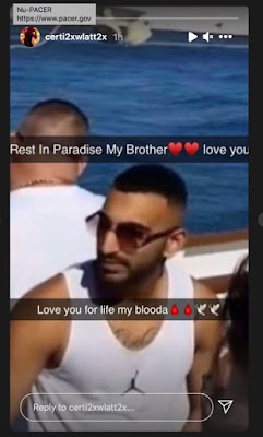 The fugitive gangster and terrible bad rapper started posting on Instagram to weigh in on the murders of fellow Brothers Keepers. He paid tribute to Jas Kalkat, a Brothers Keepers gangster whacked May 13, 2021. “Rest in paradise my brother, Gunzgang you gon B remembered brother. Everyone gon know what gunzgang really mean.”
