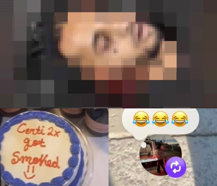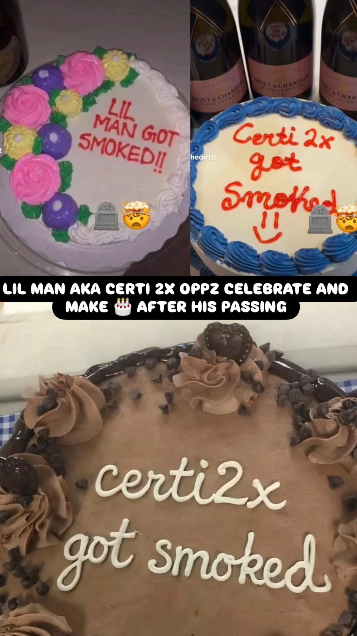 One showed cakes with “Certi2x got smoked,” with a happy face in red icing. |