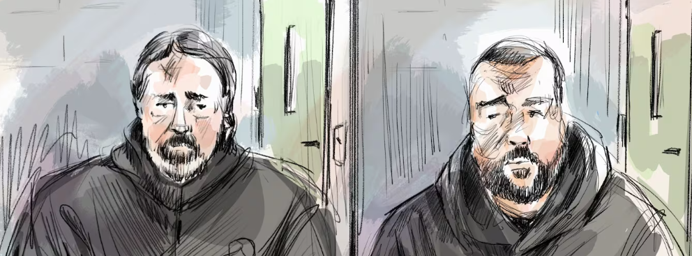 A court sketch of Const. Timothy Barnhardt (left) and Brian Da Costa.