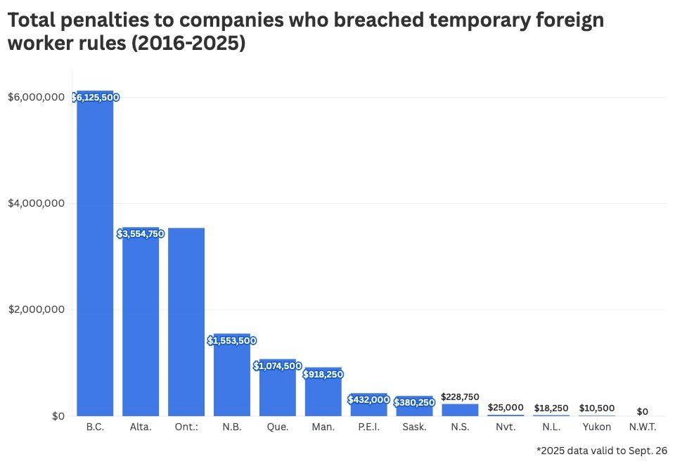 B.C. companies have racked up over a third of all federal penalties for breaching migrant worker protection laws.