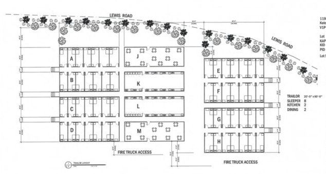 The planned accommodation for 60 TFW would consist of 8 sleeping trailers, 2 dining trailers and 2 kitchen trailers — all on a 14.68-hectare lot at 1190 Lewis Road. This manner of density is revolting. This project most closely resembles a prison. That is the Sandher idea.