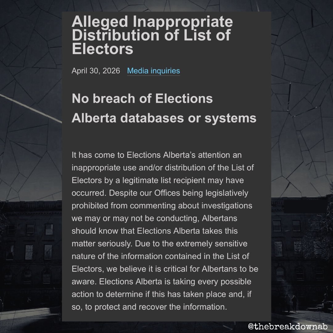 Elections Alberta guidelines limit the full electors list to registered parties, MLAs, and candidates — not citizen initiative petitioners. David Parker’s free access is not legal and is improper. Whomever granted that access to him is also a criminal.