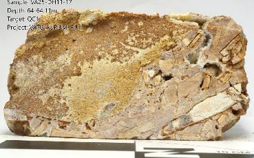 Image 2: VA25-DH11 (64.00-64.11 m depth – 83.30 g/t Au) showing chalcedonic quartz-cemented hydrothermal breccia.