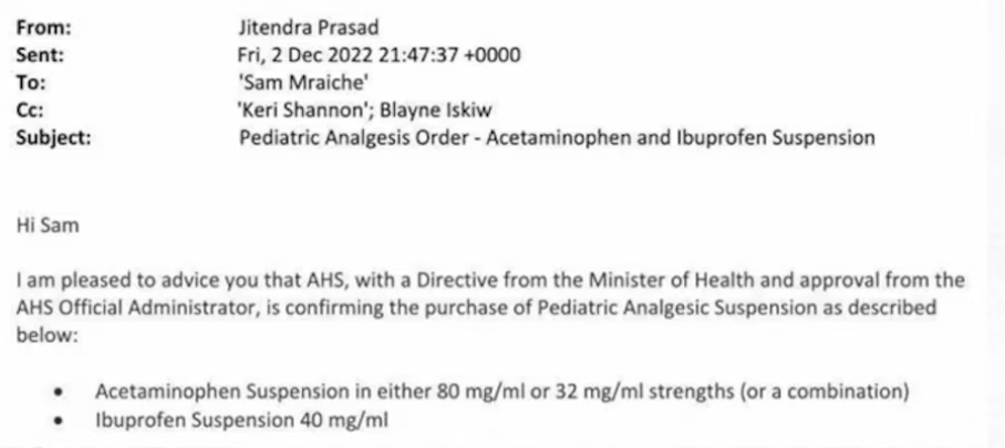 On December 6, 2022, premier Danielle Smith and then health minister Jason Copping signed a deal with Turkish company Atabay Pharmaceutical for 5 million bottles of children’s acetaminophen and ibuprofen to supply to Alberta pharmacies at a cost of at least $80m. 5 million bottles is about 10 to 14 times the entire national demand for children’s pain and fever medications. Alberta committed to purchase $70m worth of meds at $14 a bottle, twice the retail price. The other $10m evaporated in ‘internal costs’.