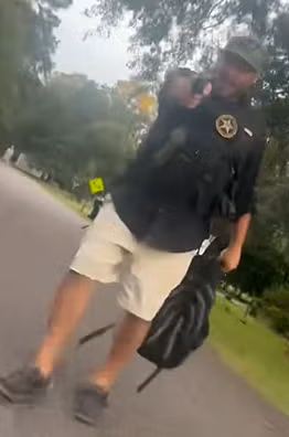 The incident occured in the Squiresgate neighborhood where the nutcase cop lived. The Beaufort County Sheriff’s office announced that he was suspended without pay and relieved of his “credentials, badge, department issued weapons”