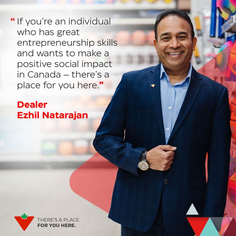 Ezhil Natarajan was highlighted by Canadian Tire as an immigrant dealer success story. He brought his skills of lying and ripping people off to Canada from India.