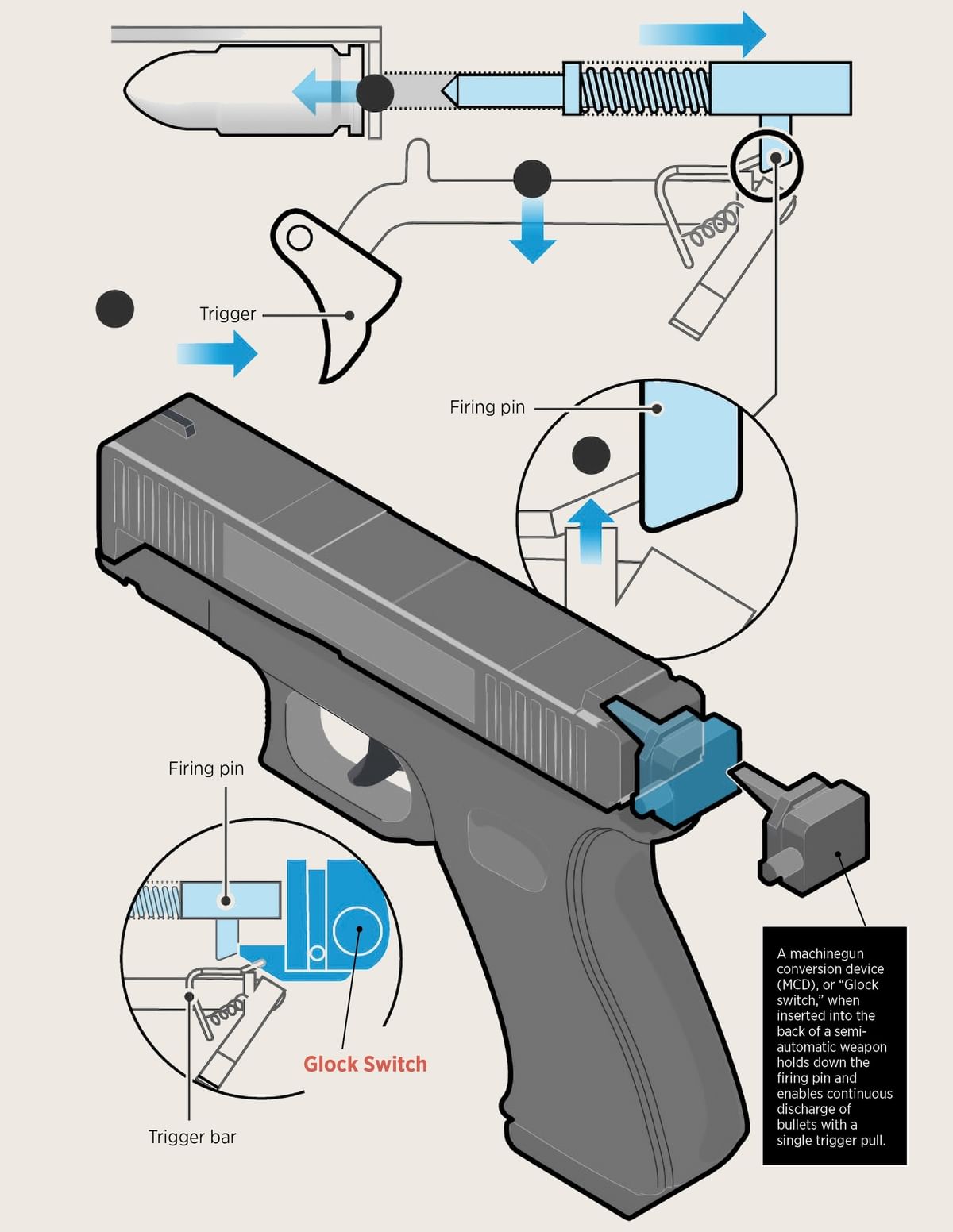 66 ‘prohibited devices’ also seized are almost certainly glock switches, which turn the weapons into a machine pistol capable of fully automatic fire. |