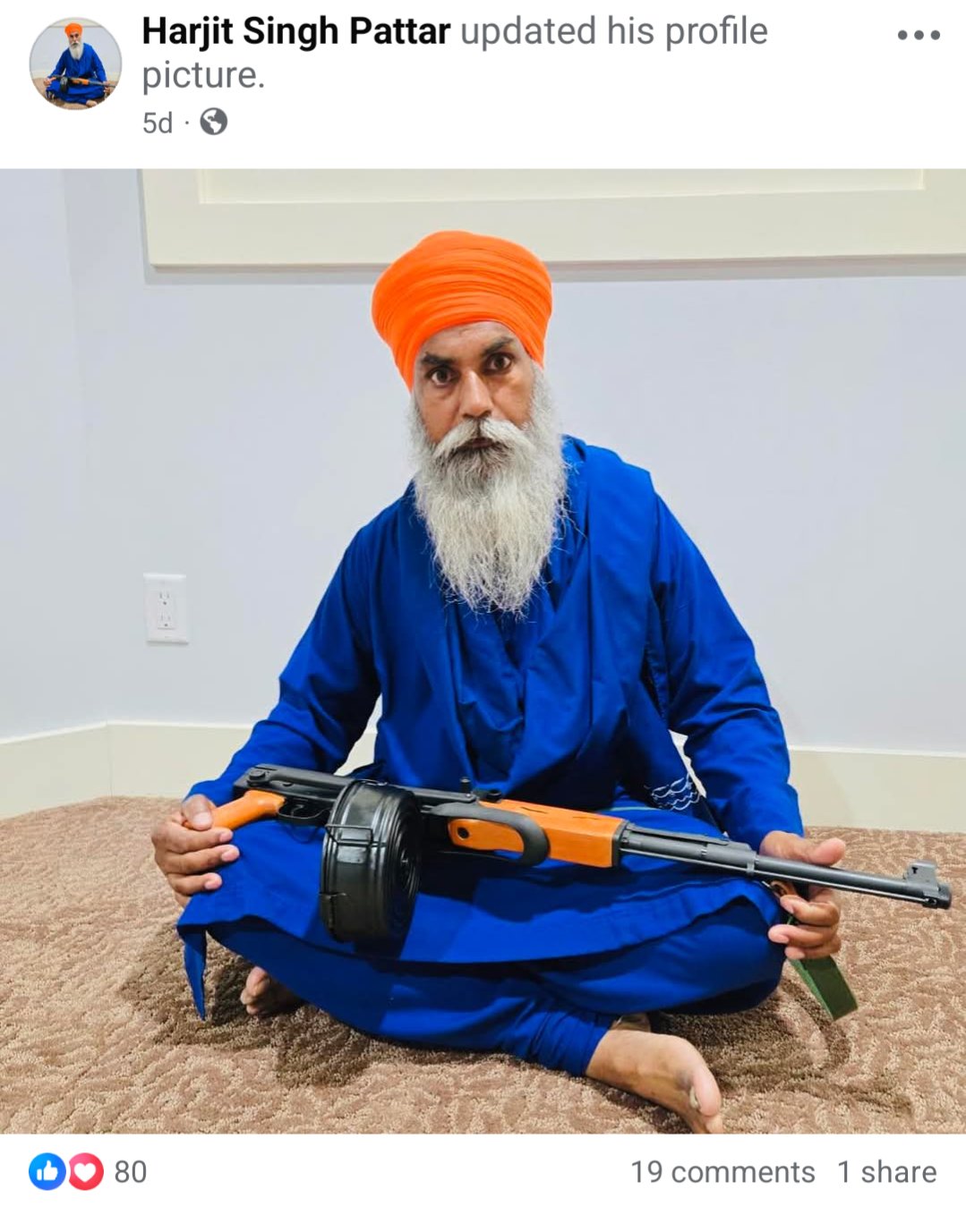 Today it was also pointed out that infamous Surrey terrorist Harjit Singh Pattar had posted a new photo on FaceBook of that ridiculous mug with a restricted weapon. A key figure linked to the newly formed AKF, Harjit Singh Pattar is famous for a viral 2024 video where he brandished automatic weapons at a Surrey wedding.